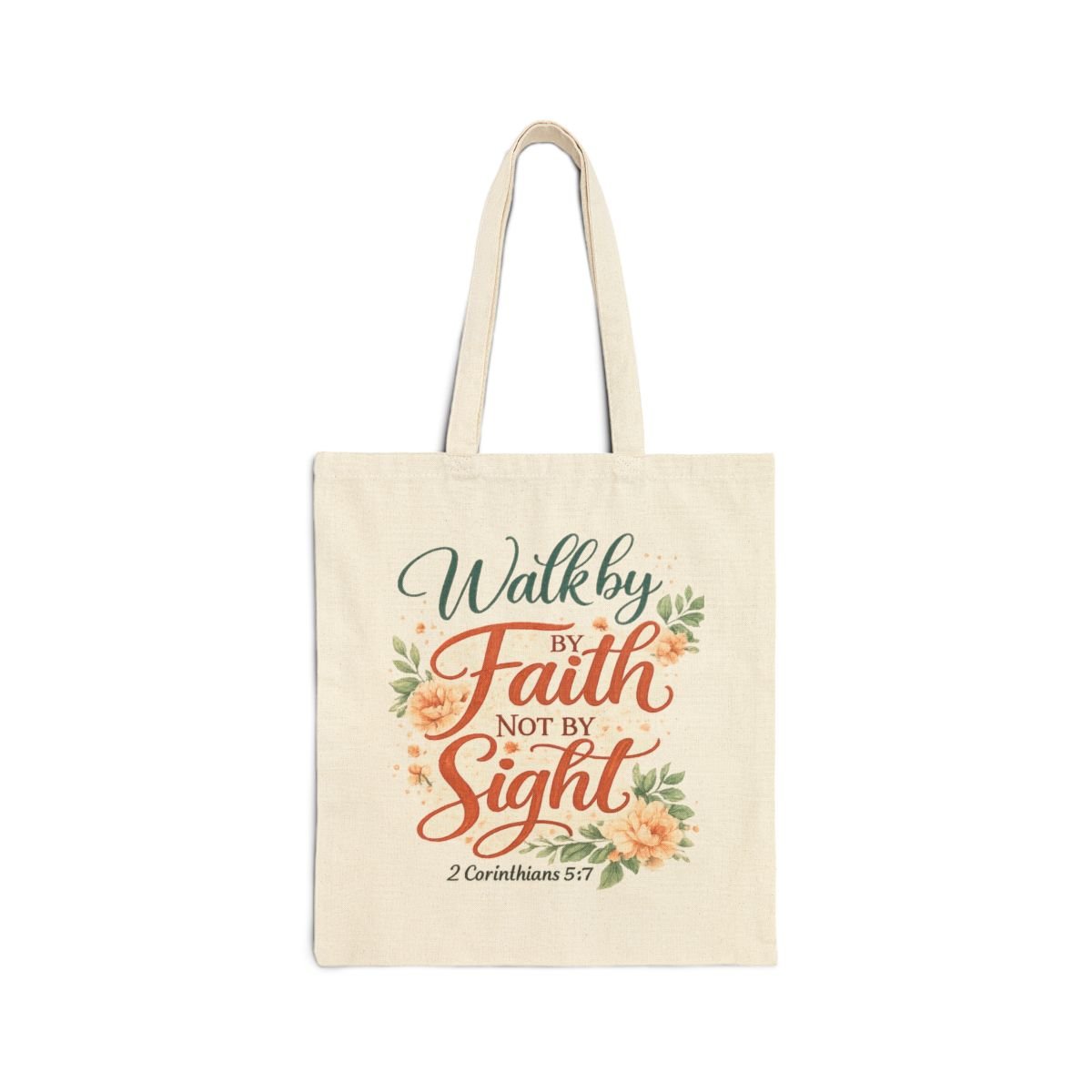 This beautiful Christian tote bag features the inspiring Bible verse “Walk by Faith, Not by Sight – 2 Corinthians 5:7.” Designed with elegant floral artwork and uplifting scripture, this tote is perfect for everyday use, church, Bible study, shopping, or gifting. Made from durable cotton canvas with comfortable shoulder straps, it is both stylish and practical while sharing a message of faith wherever you go. Perfect gift for: • Christian women • Bible study groups • Church friends